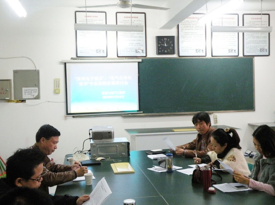 高职教育的培养目标在于培养符合实际岗位需求和具备熟练专业技能的实用性人才,所以不断开展对专业课程设置的研讨与改革显得十分重要。2013年11月15日星期五下午,信息与电气工程系组织召开了“应用电子技术”与“电气自动化技术”专业课程设置研讨会,教务处相关人员参加了会议。